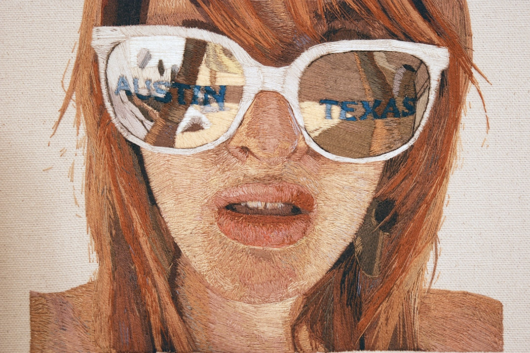 El proceso en la obras de Fouché comienza con una fotografía que le sirve de “molde” para traducir la imagen en hilo, lo que culmina en una pieza puramente artesanal de grandes dimensiones.